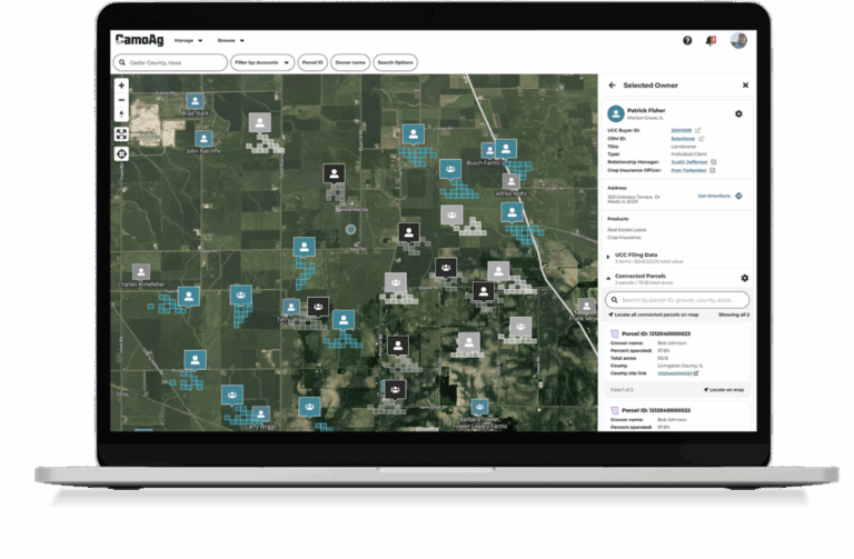 Know who you’re talking to, see what they own, and evaluate client needs – before the conversation starts. With CamoAg, loan officers can instantly access a farmer’s operation before the meeting, so you can focus on asking more pertinent questions to better serve your clients.