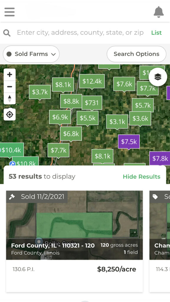 The CamoAg platform allows you to quickly assess the value of farmland with up-to-date data. Plus, our solution integrates with Land Sales Bulletin’s market-leading farm transaction data in the Midwest.